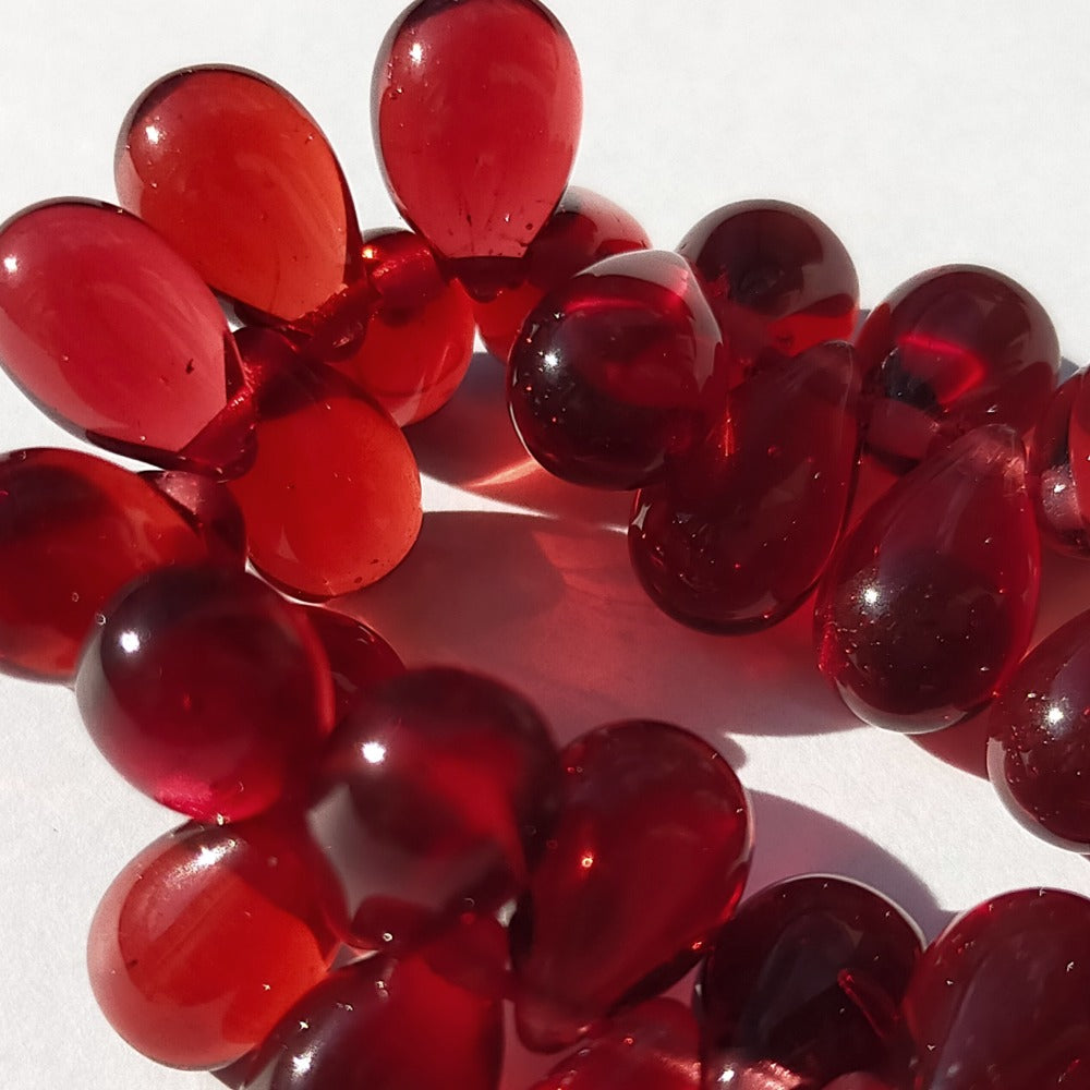 チェコビーズ ドロップ 6x9mm ガーネットレッド0・クリア|10個入 ハンドメイド素材 BULBULBEADS
