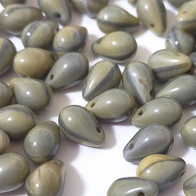 チェコビーズ ドロップ 6x9mm グレーゴールド・トパーズオーバーレイ|20個入 ハンドメイド素材 BULBULBEADS