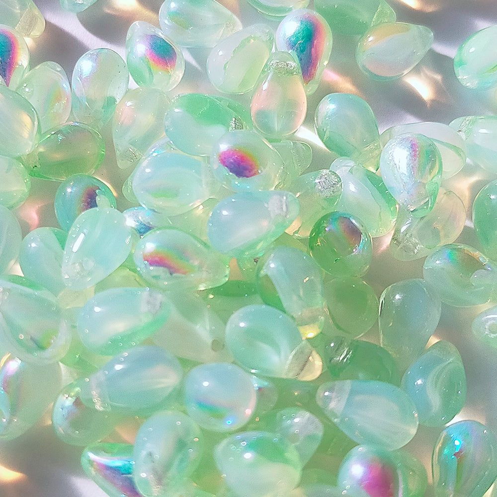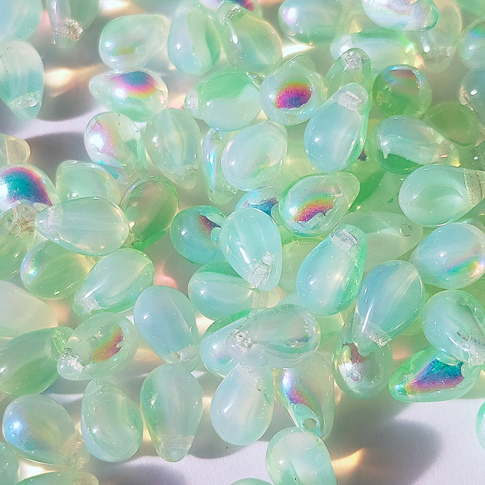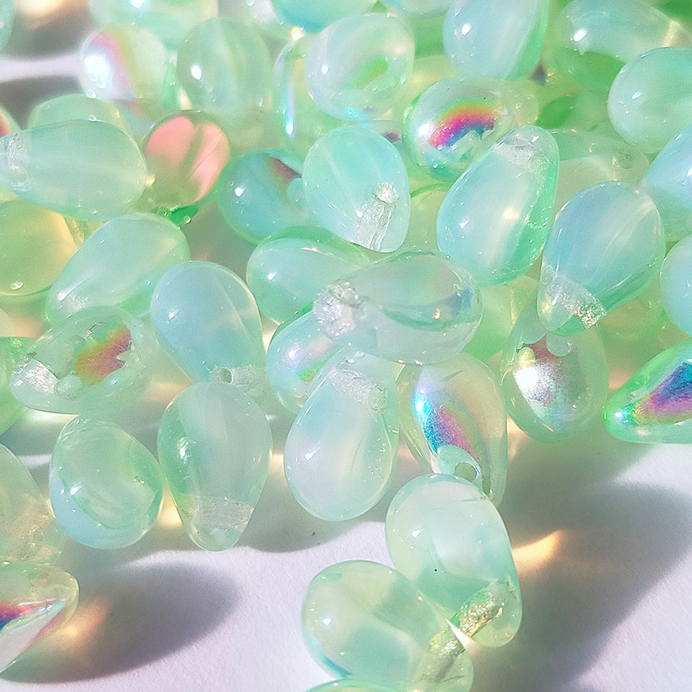 チェコビーズ ドロップ 6×9mm ミストラルハーブグリーン・コンビAB|10個入 ハンドメイド素材 BULBULBEADS