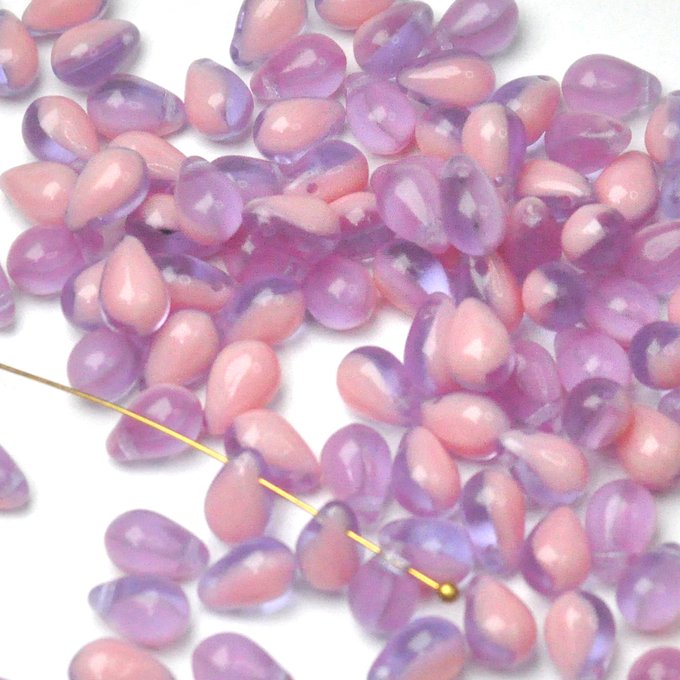 チェコビーズ ドロップ 6×9mm オーキッドピンク・コンビ|20個入 ハンドメイド素材 BULBULBEADS