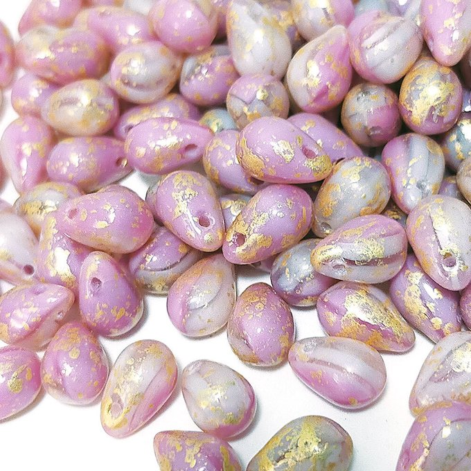 チェコビーズ ドロップ 6×9mm ピンクマーブル・ゴールド|20個入 ハンドメイド素材 BULBULBEADS