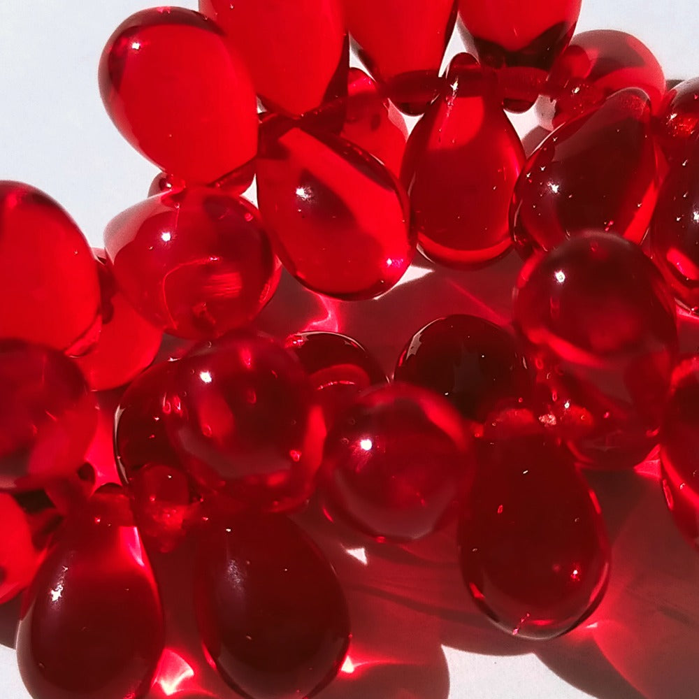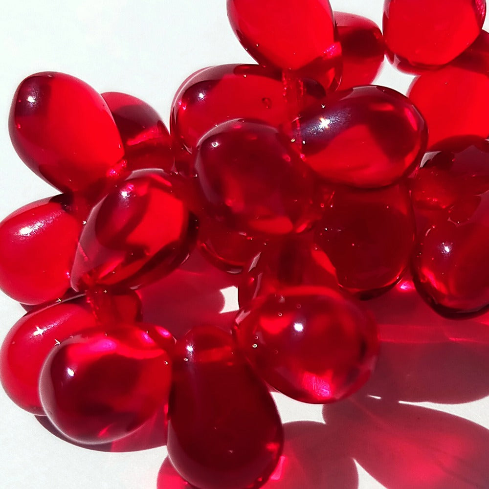 チェコビーズ ドロップ 6x9mm シャムレッド8・クリア|10個入 ハンドメイド素材 BULBULBEADS